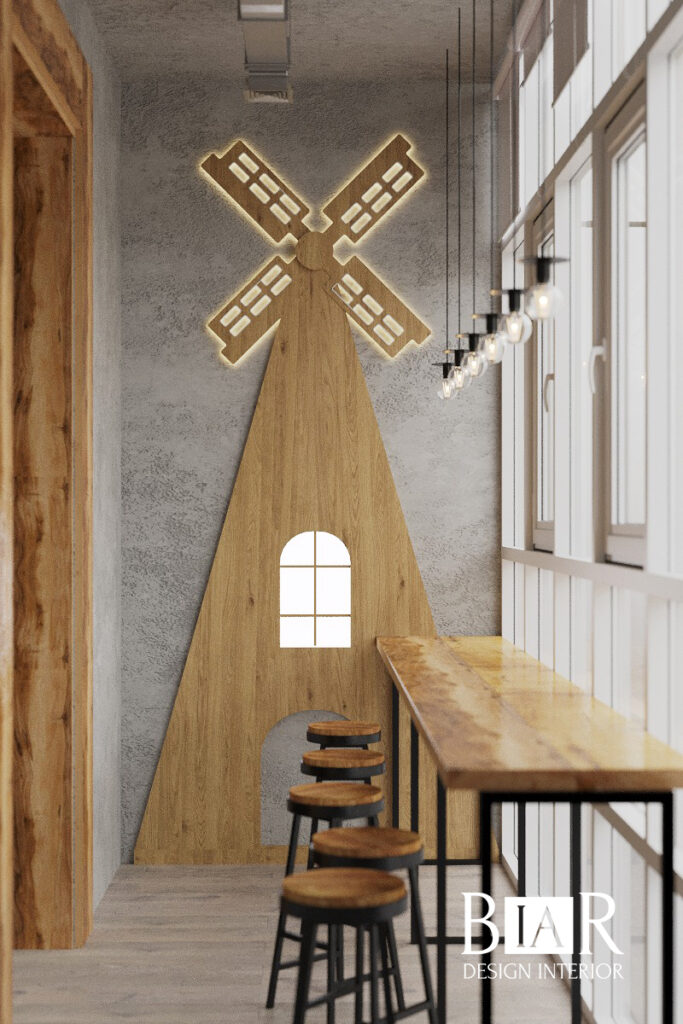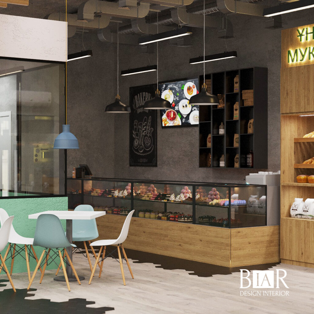 Разработана планировка помещения пекарни, где посетители могли бы приобрести продукцию, а также отдохнуть, выпить вкусное кофе с выпечкой.